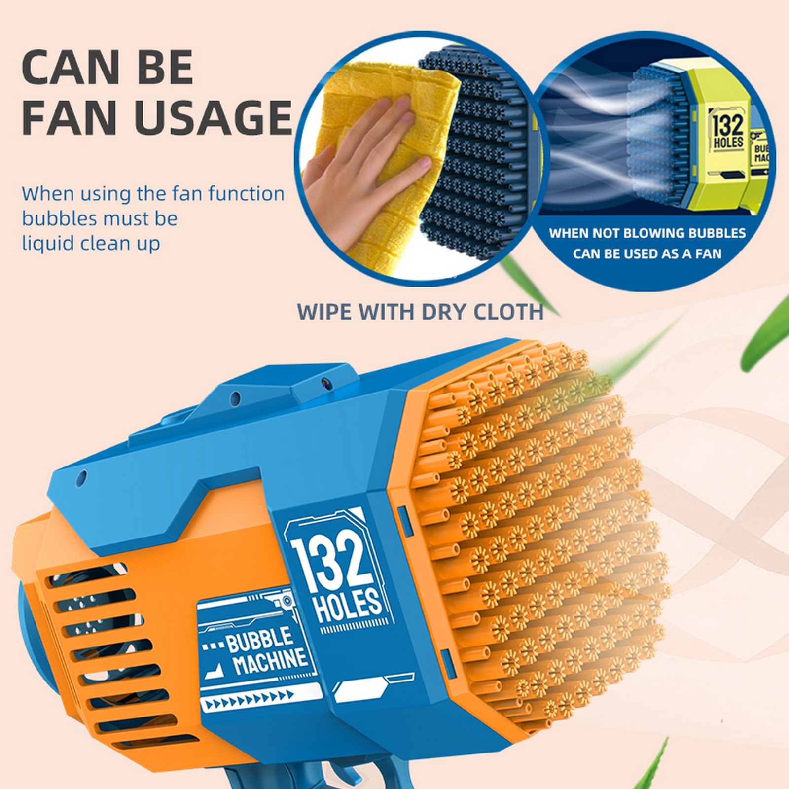 • Dazzling Electric Symphony Lights: Experience the magic with our upgraded 132-hole bazooka, boasting an Electric Symphony Light design. The vibrant color matching, concentrated bubble water blessing, and dazzling lights ensure summer fun is taken to the next level. Easily clean residual bubble liquid with a pag for a flawless finish.
