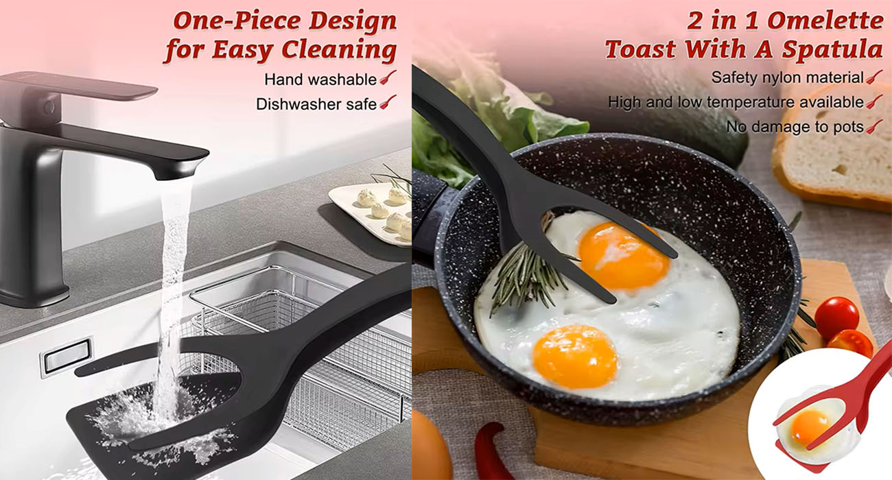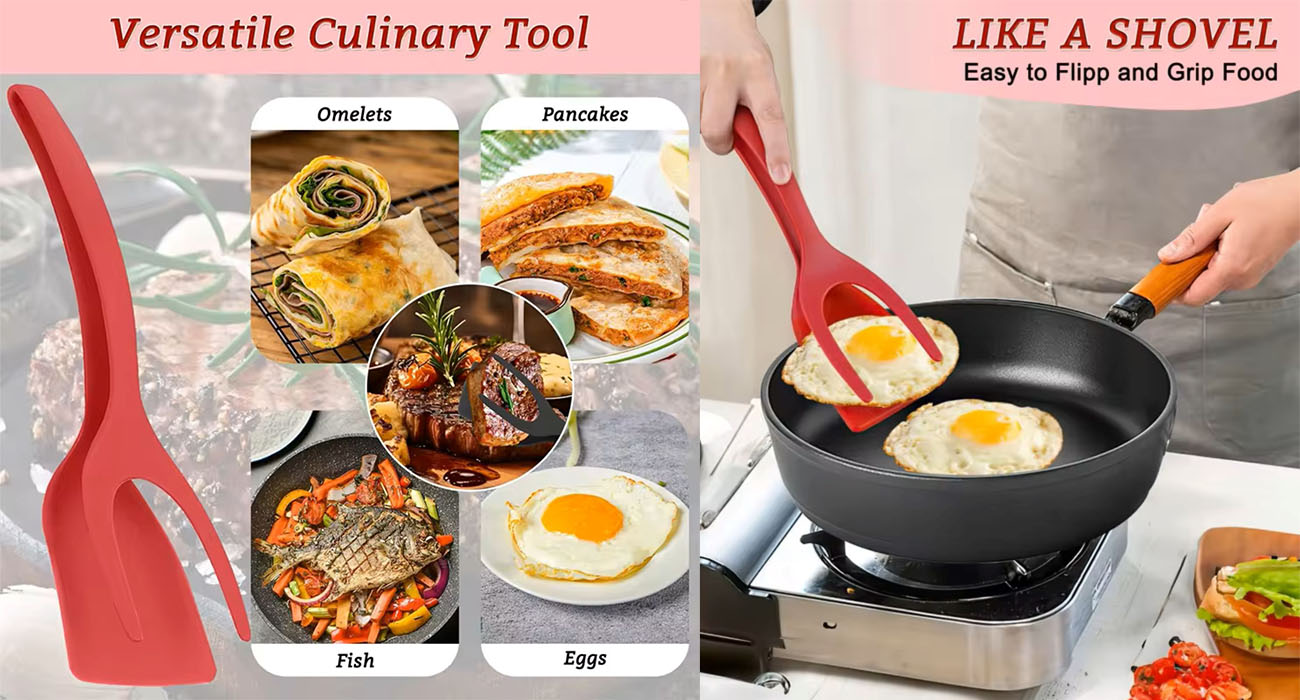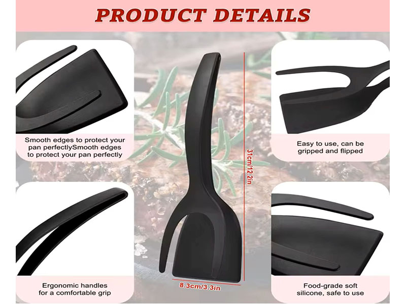 Smooth edges to protect your pan perfectly Smooth edges to protect your pan perfectly, Easy to use, can be gripped and flipped, Ergonomic handles for a comfortable grip, Food-grade soft silicone, safe to use