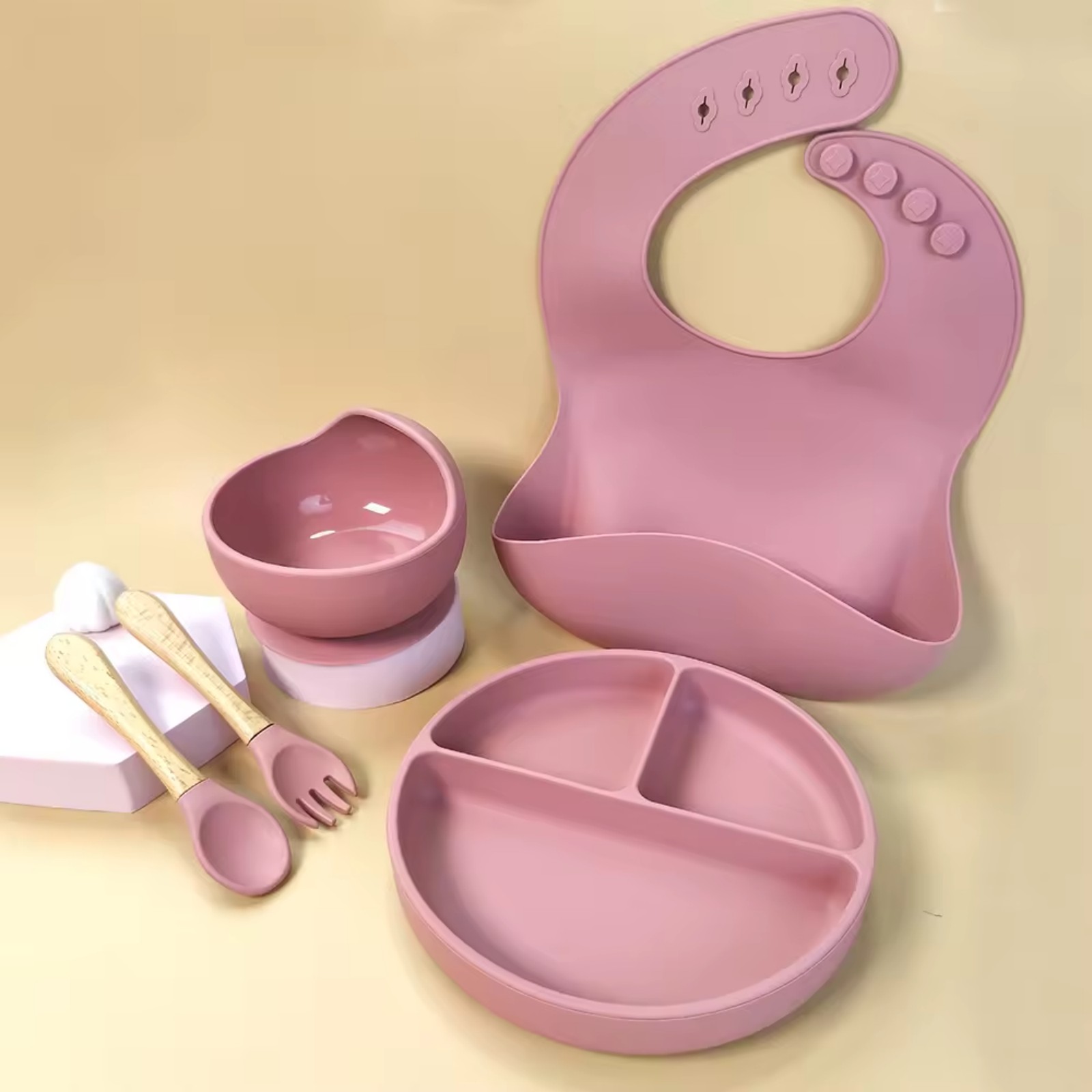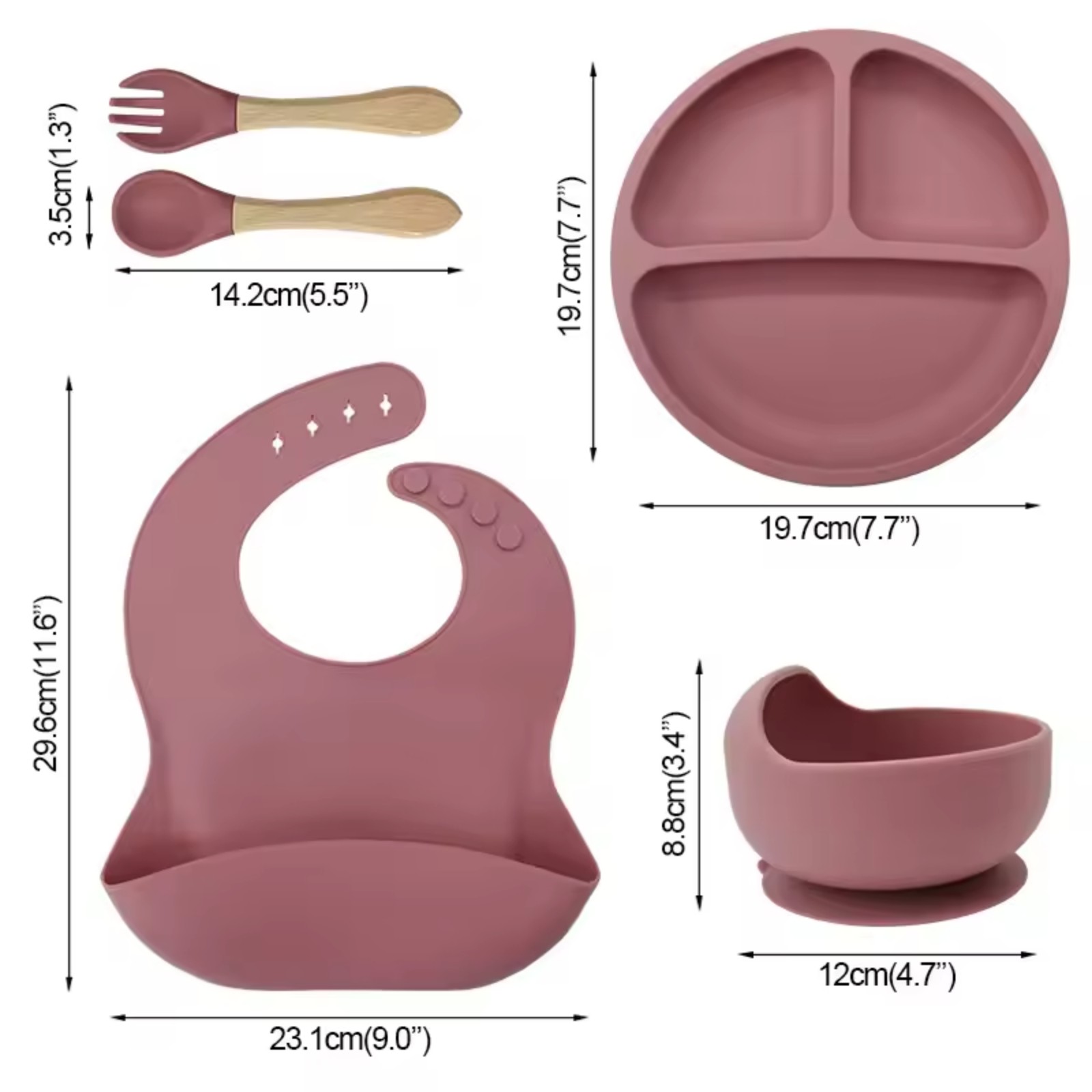 Make self-feeding simple, safe, and enjoyable with our 6-piece silicone baby weaning set, designed to support your child’s independence during Baby-Led Weaning (BLW). This complete set includes a suction plate, suction bowl, adjustable bib, spoon and fork—everything your little one needs for a comfortable feeding experience.